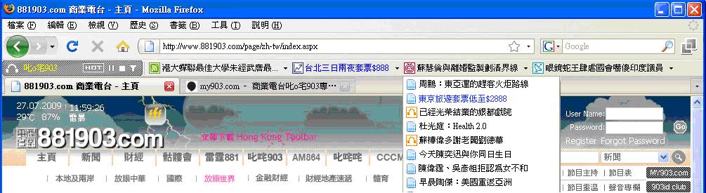 Hong Kong Toolbar, a multi-media tool developed by Commercial Radio (CRHK), has brought online broadcasting to a completely different new era and has received over 1,000,000 downloads since its launch 9 months ago. Users can enjoy various radio channels over the Internet after free download and installation, and Hong Kong Toolbar will also provide instant news, financial updates, entertainment information, etc. To know more or to download, please CLICK HERE。 We are proud to announce that UDomain has become the Authorized Reseller of CRHK Hong Kong Toolbar Advertising. This provides more options for product promotion and marketing campaigns to our customers. Below are types of advertisements available: 1. Place your Company Logo on the Toolbar 2. Place Your Slogan between the News