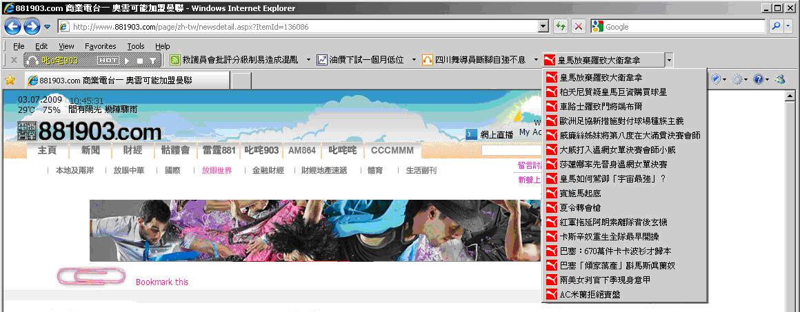 4. Insert a 30 second audio advertisement before the news program sound-track With only HK$8,888 up, you can promote your product and service to millions target customers via Hong Kong Toolbar. Call us immediately at (852) 2554 7545 for more details! |